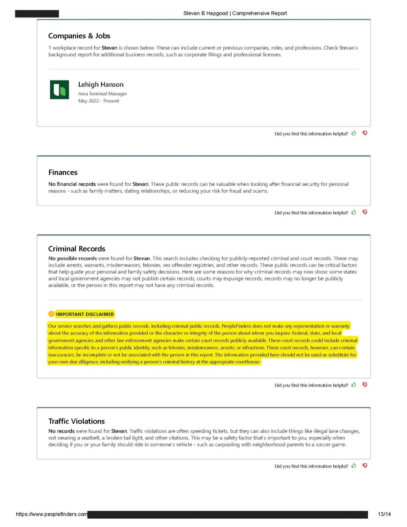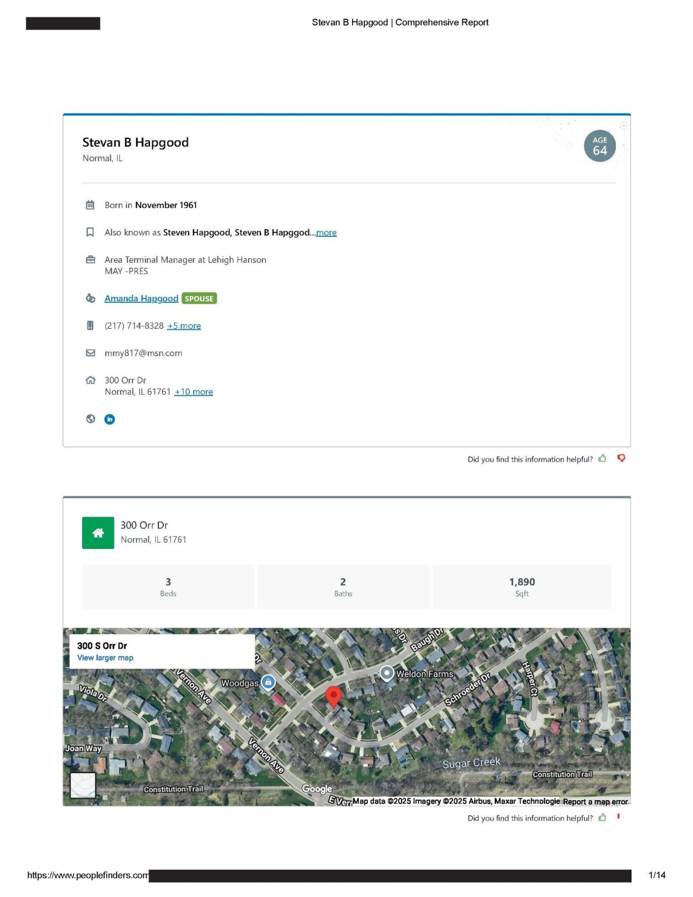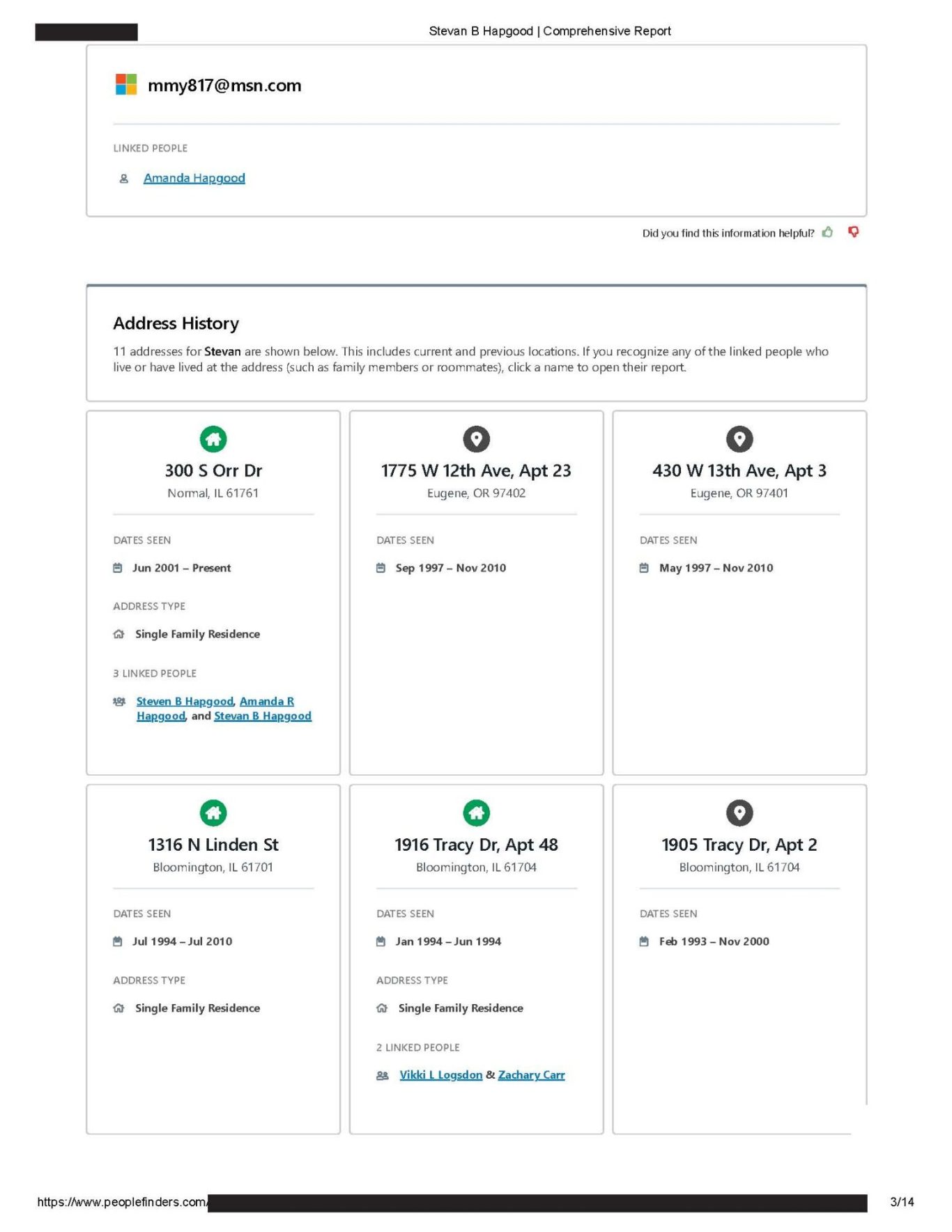 https://www.peoplefinders.com (Stevan Hapgood #63863868) website and the