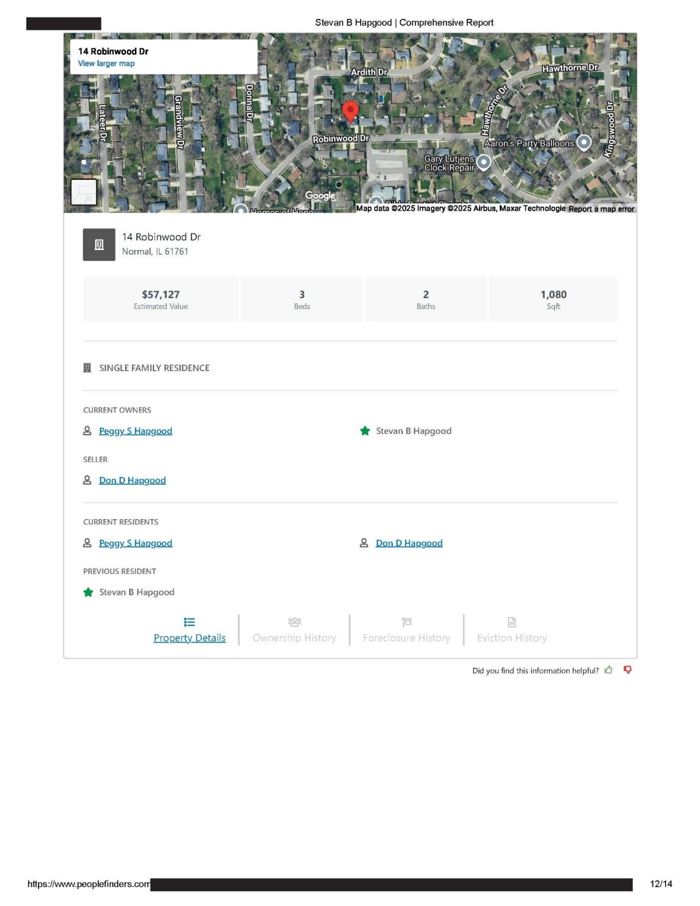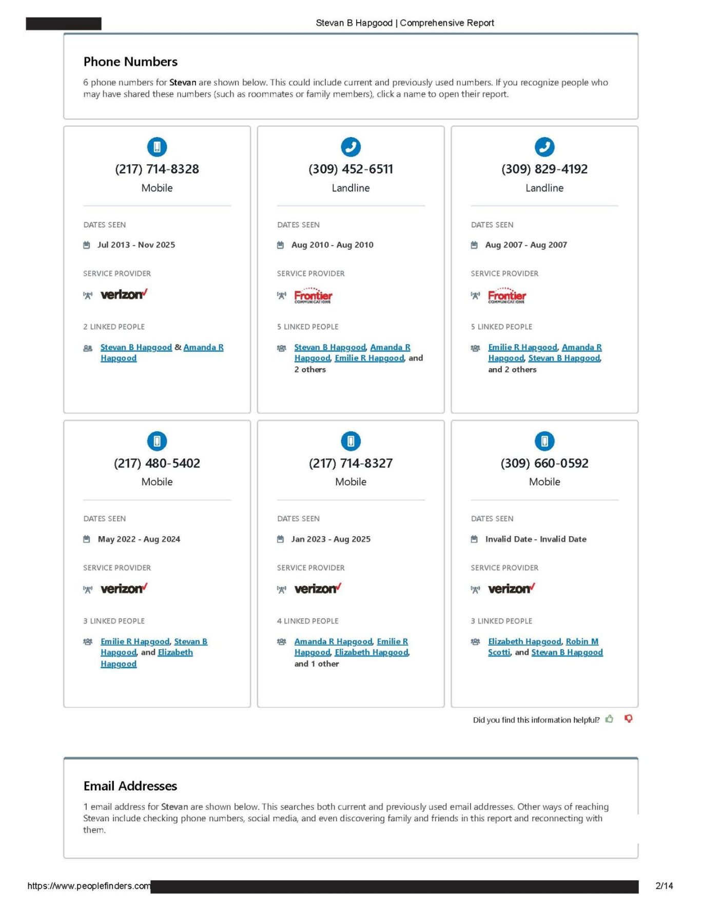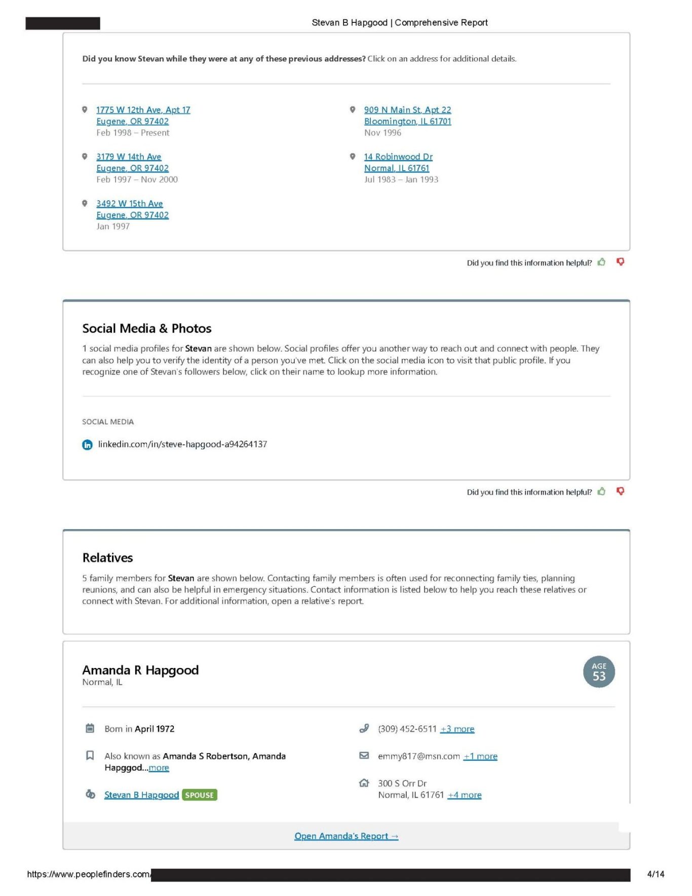 https://www.peoplefinders.com (Stevan Hapgood #63863868) website and the